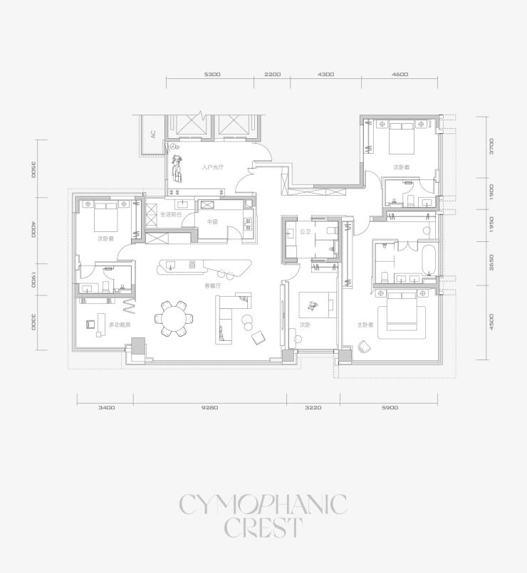 A3 3室3厅3卫+1多功能房间 215㎡