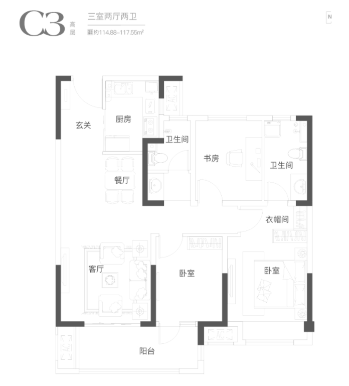 外墙门窗均采用断桥铝合金及三层中空玻璃;全屋铺设地暖,带来更佳的舒适度
