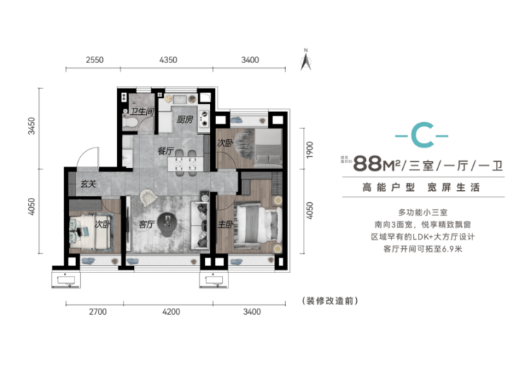 罕见88㎡ 3室户型 开间4.2米