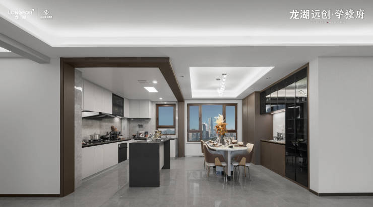 L型房,预留双开门冰箱空间,取洗切炒一气呵成,6-10人中岛餐桌,私享精致家宴,更可百变为太太的花艺台丈夫的茶台孩子的手工台