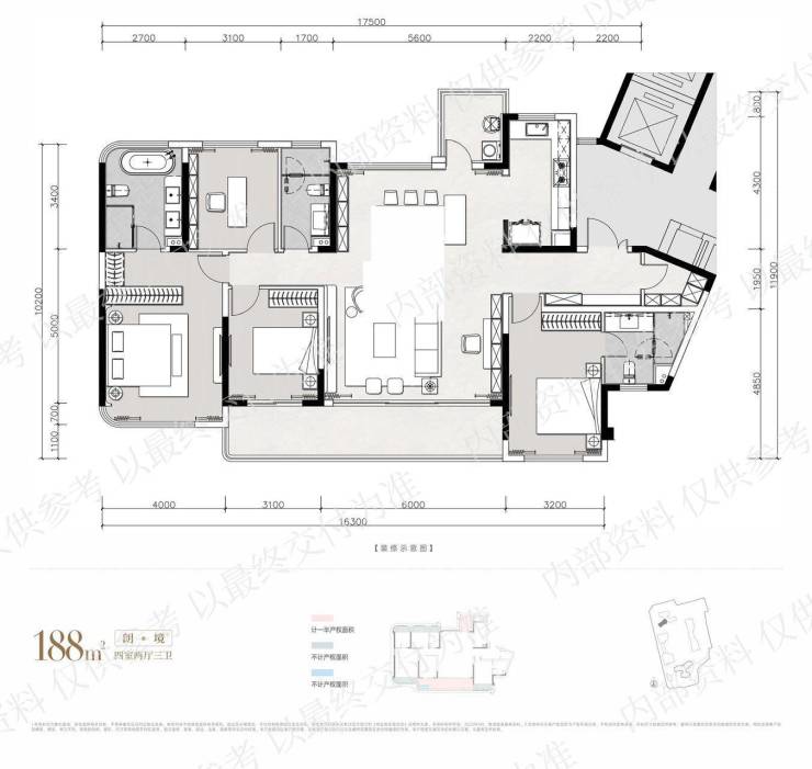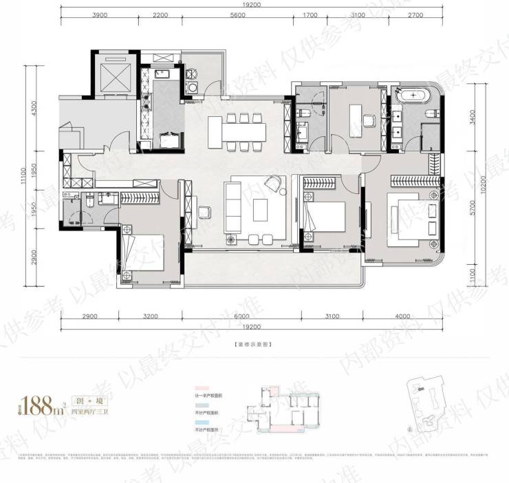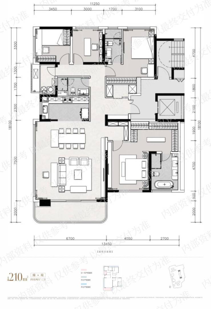 双主卧套房分区设计,总统级主卧套房配备男女主专属衣帽间,270°环幕视野