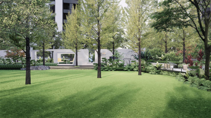 延续建筑的现代雅奢风格,营造简洁大气、时尚的景观空间。7型建筑布局,形成东西-南北两大景观轴线,宅间形成多个集中的花园空间序列;育树引林,自然复兴,依托原生树打造七组植物花园:七组植物,七重空间感受,四季有绿;七重时间花园院落、两条活力环道,打造新成都花园院落。