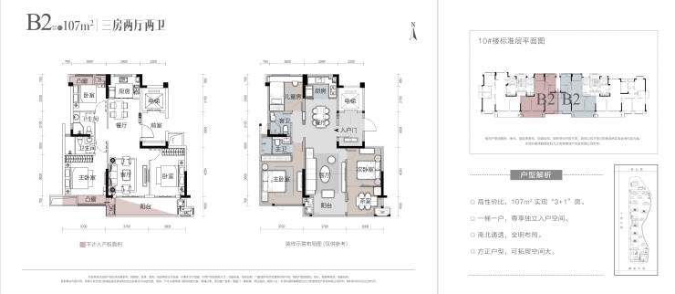 B2 107㎡三室两厅两卫【专梯专户 高拓展空间 可实现3+1房】