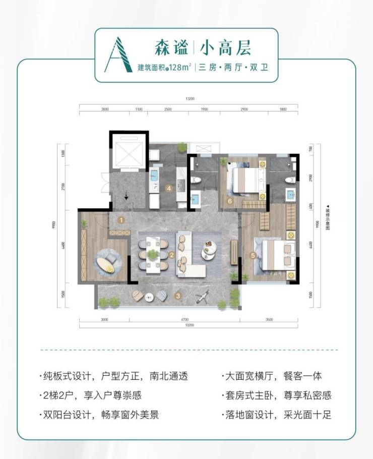 部分户型拥有大面宽、独立电梯厅或双主卧设计。
