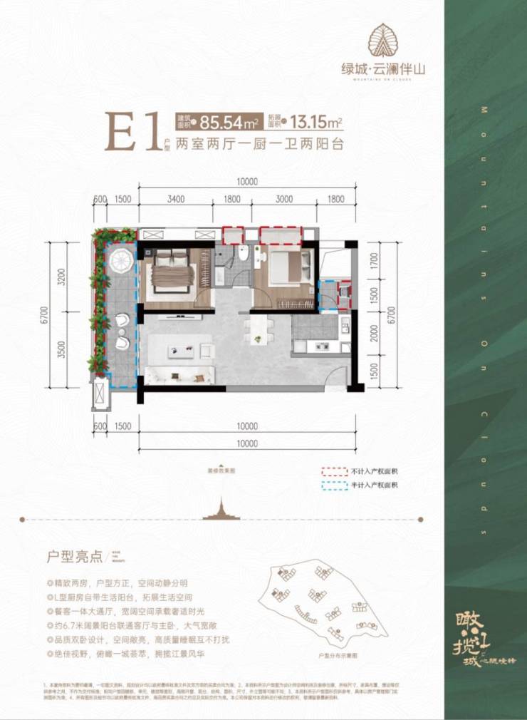项目位处半山,背靠万亩雨林,鲜氧弥漫,瞰江揽城 ,依山伴水,配套醇熟,生活便利