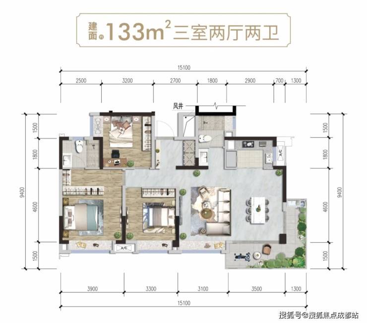 133㎡三室两厅两卫