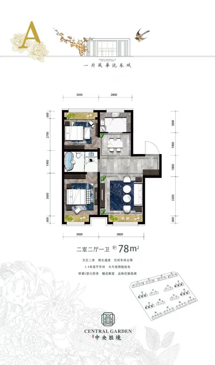 【面积区间】一室53㎡两室78/88㎡;三室96/109㎡;