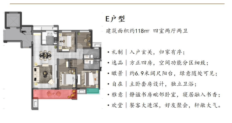 建筑面积约92-118㎡阔景三房