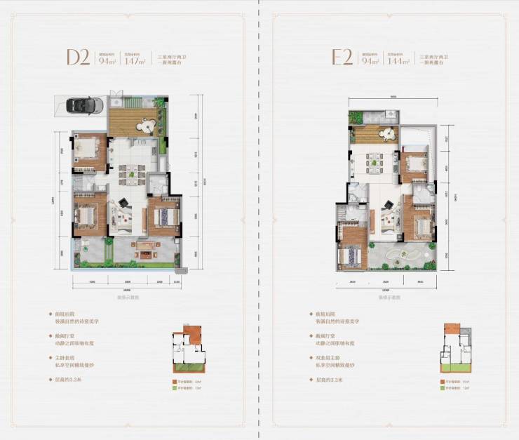 叠拼D2户型建面94㎡实得147㎡
