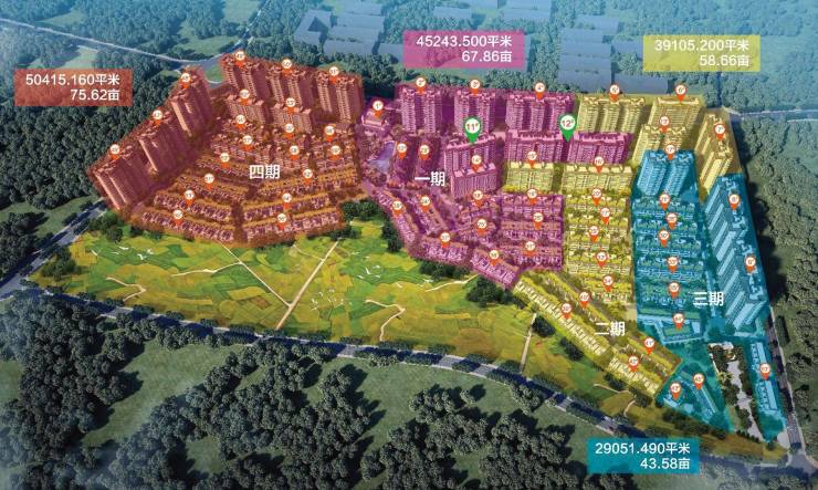 建筑面积:约40万㎡(住宅建面约29万㎡,分四期开发)