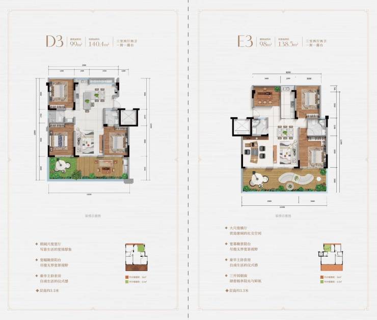 叠拼D3建面99㎡,实得140㎡
