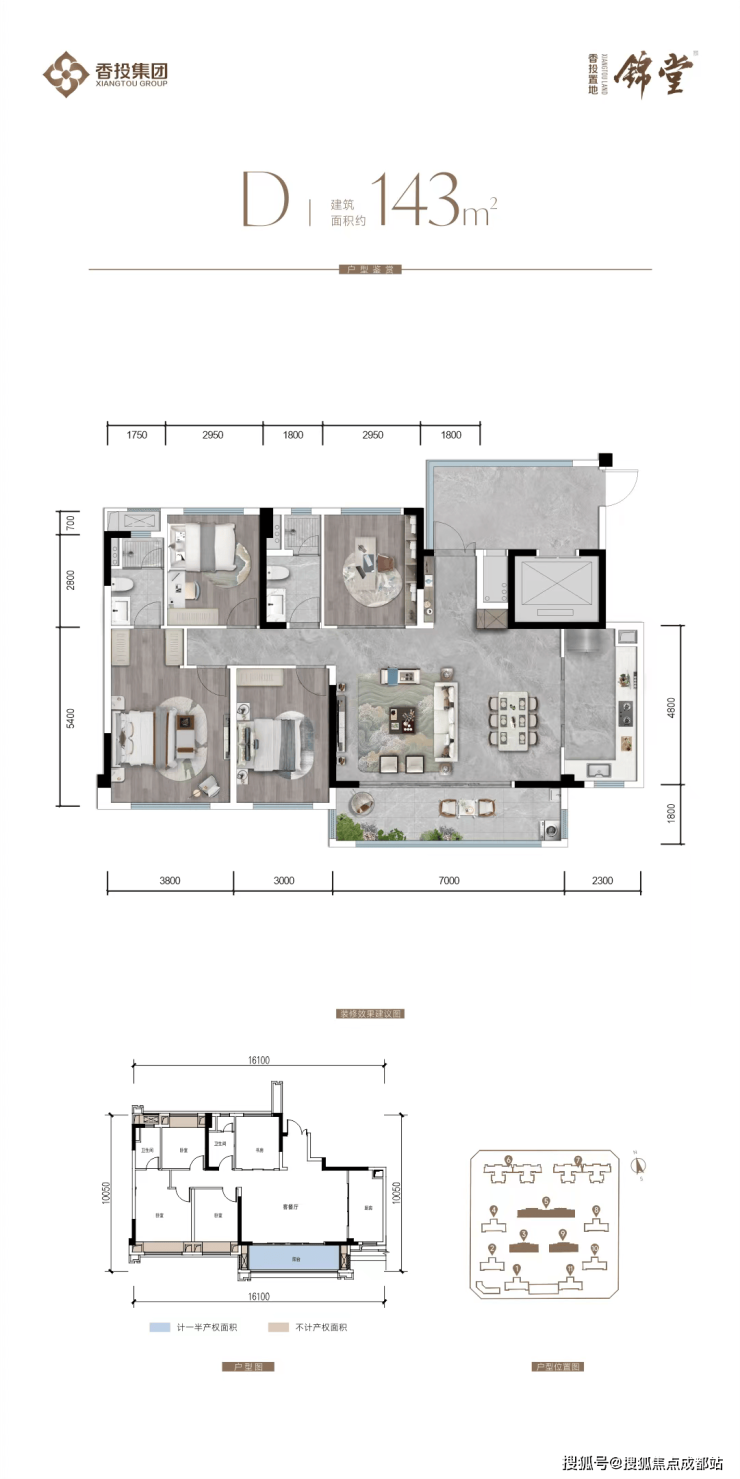 中庭楼王3、5、9号楼精装交付:建面约 143㎡