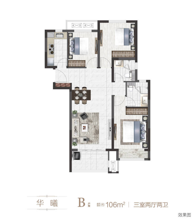 【106㎡三室两厅两卫】