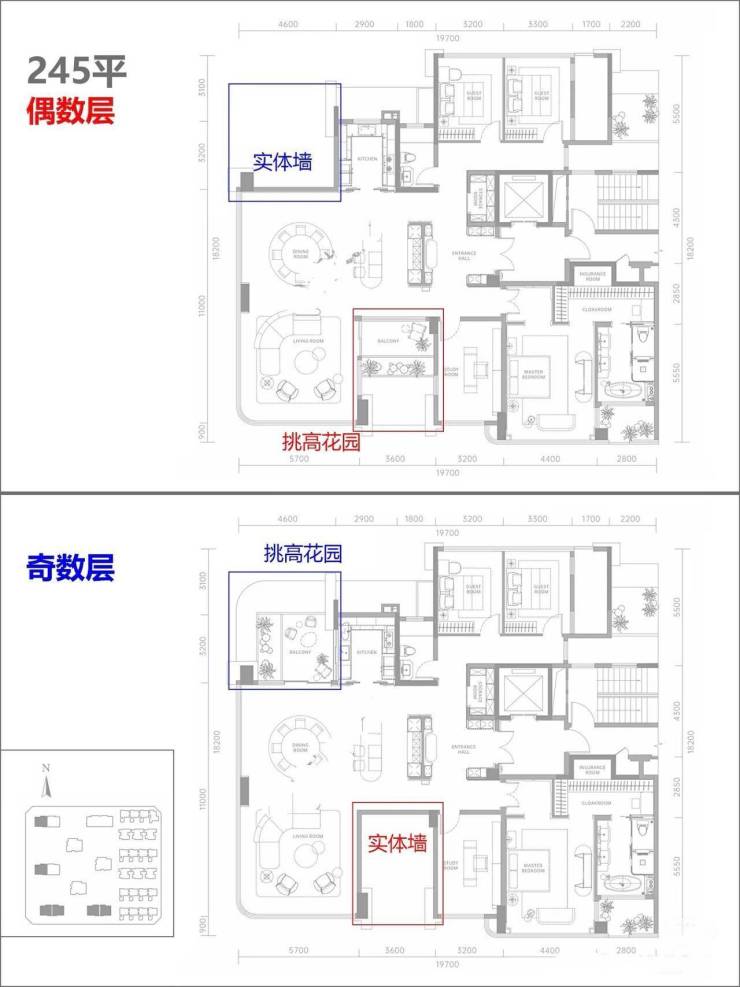 第二,每户都有近7米通高的主花园露台,与楼王户型一样采用「错层式+内凹结构」设计,提供优于传统阳台的实用面积与层次感。