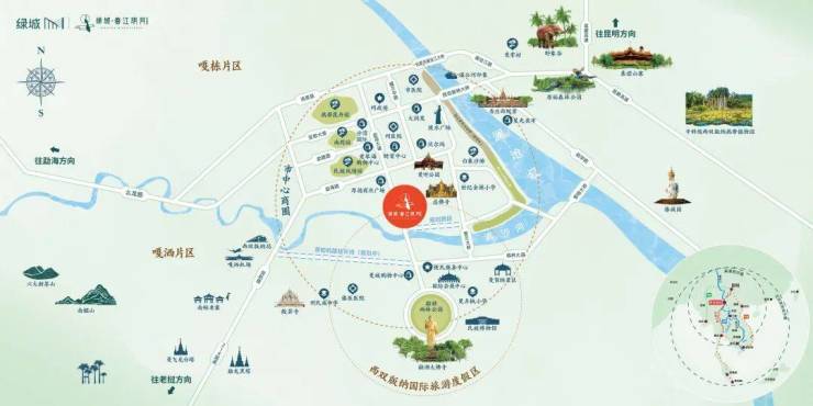 城市中轴:勐泐大道与曼弄枫旅游区交汇处;