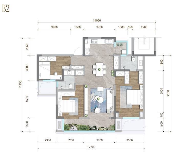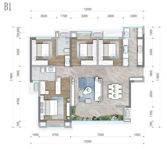 双阳台配置 / 约7.2米宽幕景观阳台,带独立生活阳台