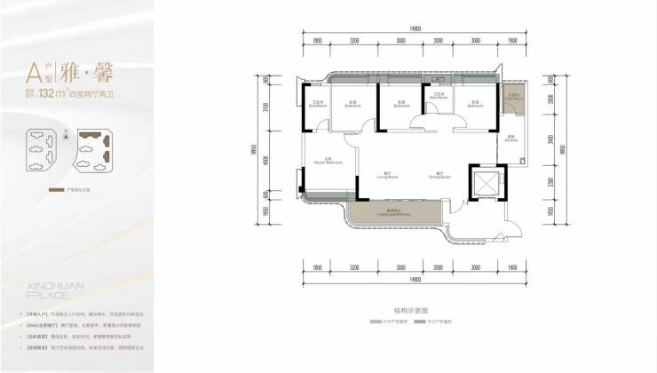 【户型区间】132㎡(四房双卫)-143㎡(四房三卫)