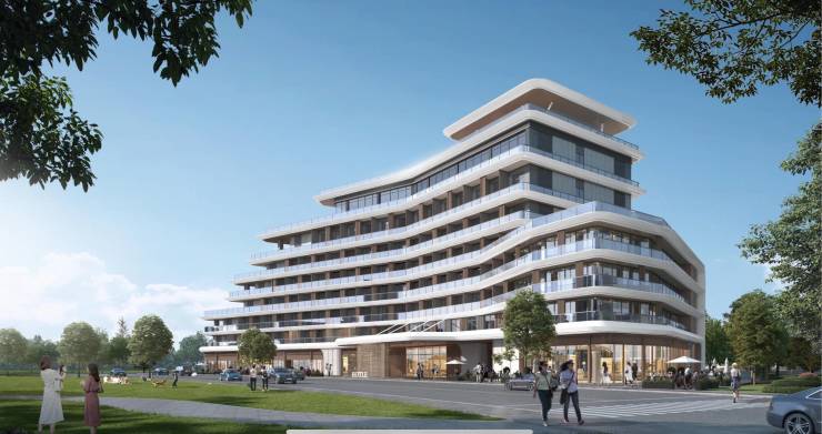 8 栋 11 层纯板式小高层、4 栋商业综合体(含星级酒店)