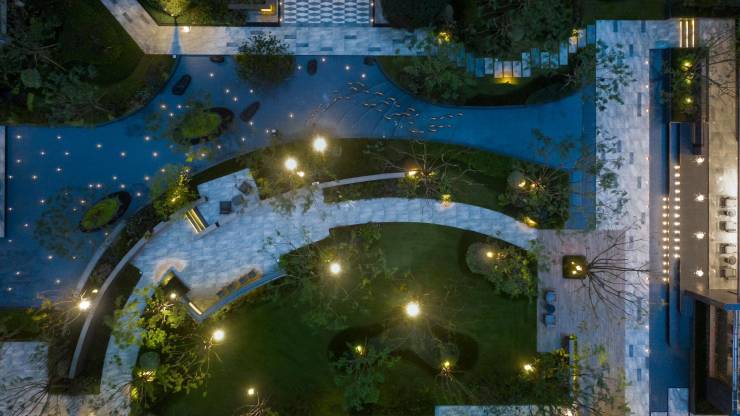 约 3.5 万㎡中央园林、一轴两带三庭院、全龄活动空间、超 50 米阔绰楼间距
