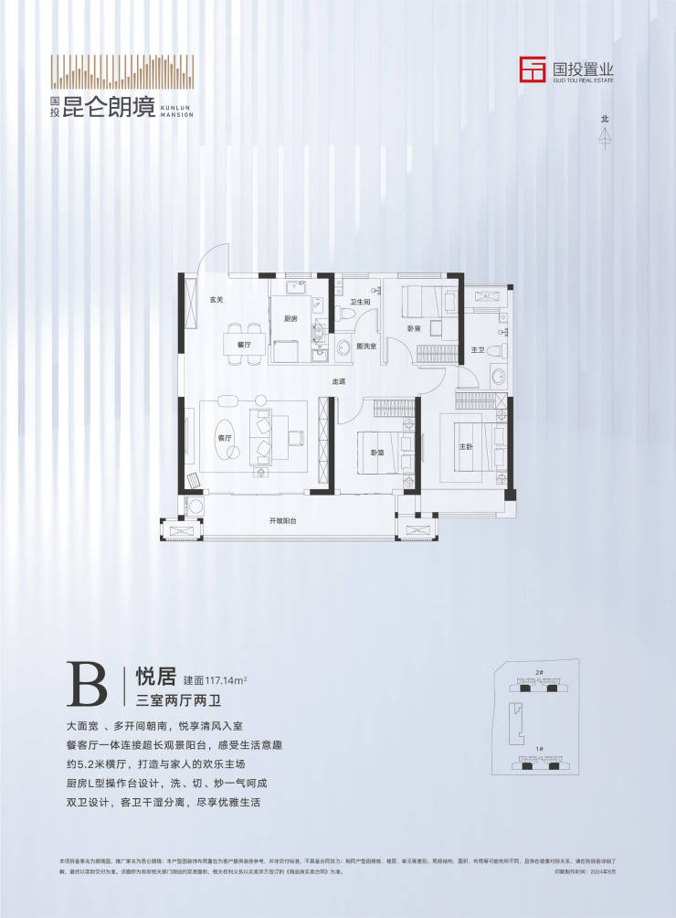——项目基本信息——【项目名称】国投·昆仑朗境【 开发商 】 郑州国投房地产开发有限公司【占地面积】约18.7亩【建筑类型】 高层【 总户数 】330户【 容积率 】约2.99【交付标准】精装交付【产权年限】住宅70年【交房时间】2024年9月