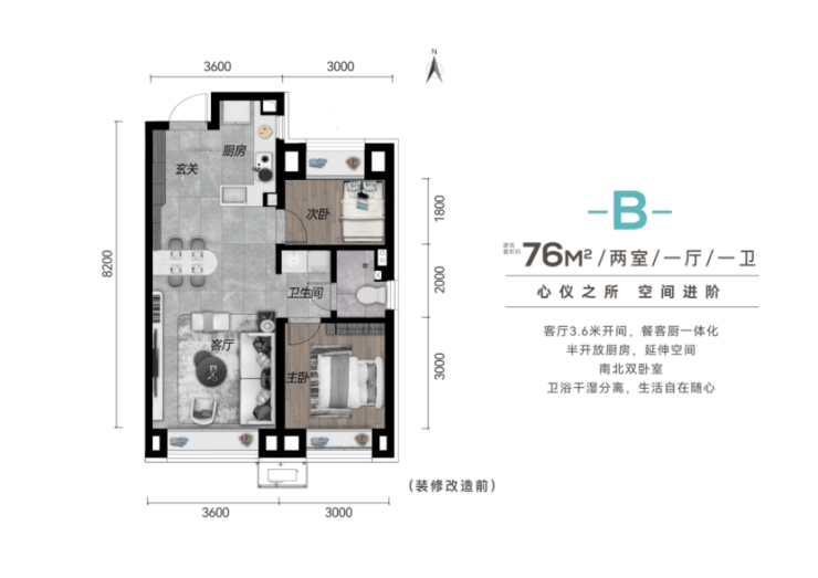 24H活力园林,区域罕见户型,88平宽厅可达6.9米