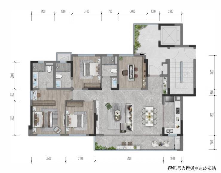约6.6米宽厅开间,最大程度拉通空间视觉感