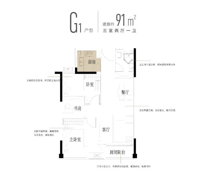 【主力户型】:91㎡、118㎡、125-128㎡湖居/办公三房