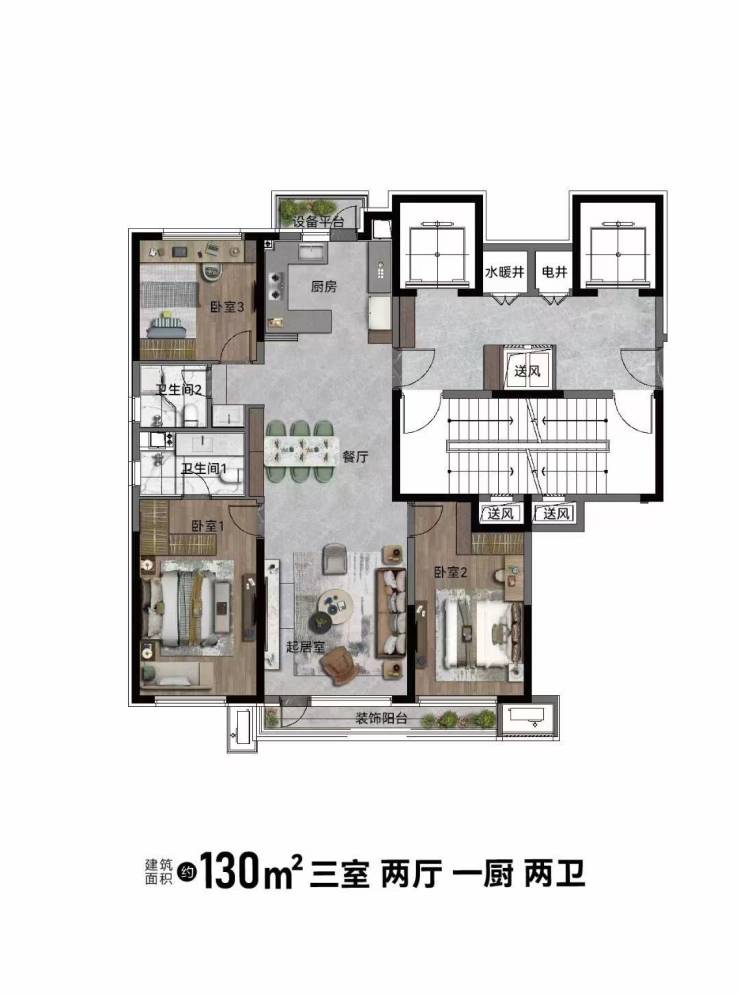 臻选好户型——110㎡房源较比同类三室两卫节省10-20平面积,同样的户型极致的改善