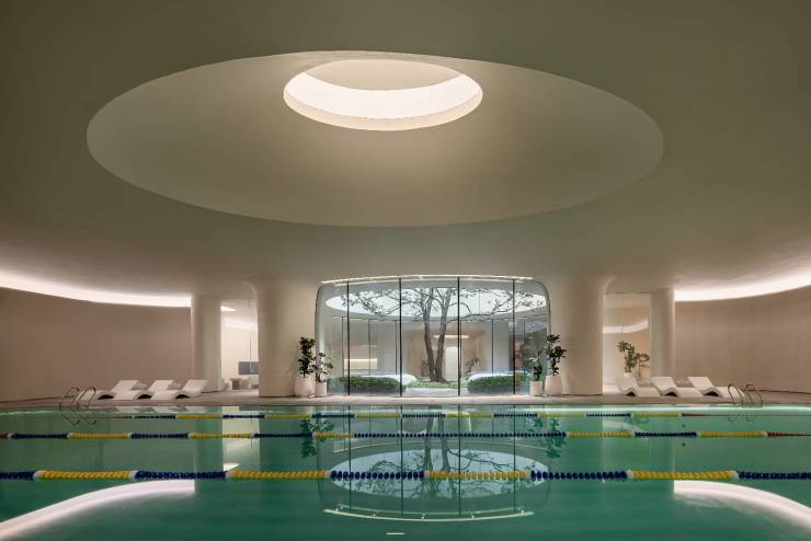艺术长廊,光影休闲吧、松餐厅、天光泳池、环氧健身房、儿童阅读空间、多功能影音室、下沉庭院等多元休闲空间
