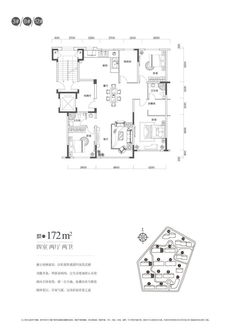 1、平层145-165-172-183-192-208㎡ 飞机户型 贯通梯 均价11000元/㎡