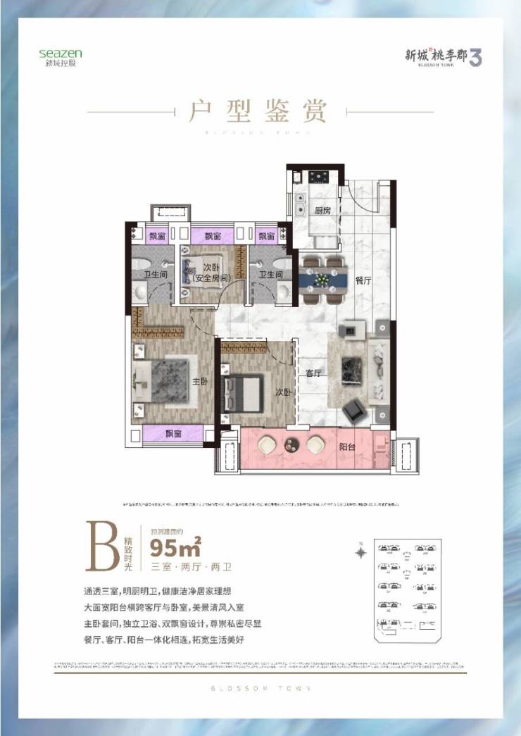 在售户型: 95㎡(三房两卫)、105㎡(三房两卫)、132㎡(四房两卫)