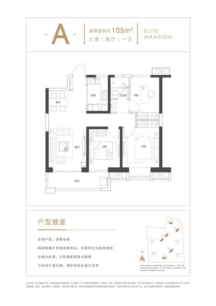 在售户型: 105㎡三开间朝南 全明三房