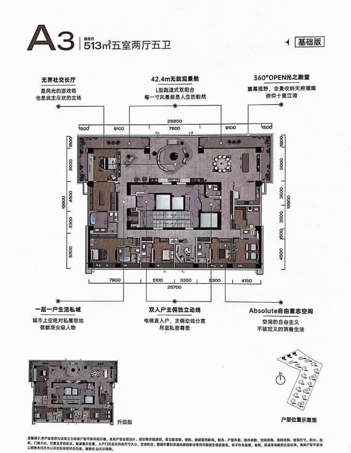 顶楼的部分还有超500㎡的3T1户和700㎡的3T2户产品,妥妥的豪宅大平层。
