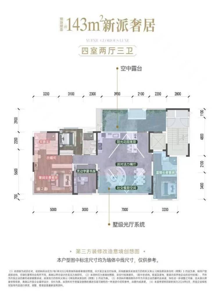 143㎡——追平160㎡的享受 ,人生小成的极致仪式感 独立入户电梯厅 约7.2米大横厅 南北双阳台