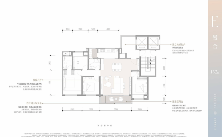 户型面积核心亮点空间特色A/B2型100㎡约6米横厅+双阳台H型厨房/LDKG一体化布局C型103㎡L型玄关+双功能阳台主卧飘窗+独立卫浴D型112㎡约6.8米奢阔横厅独立电梯厅+双排衣帽间E型132㎡四开间朝南+方厅百变空间独立电梯+双阳台系统