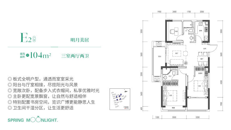 E2户型 / 建筑面积约104㎡ 三室两厅两卫