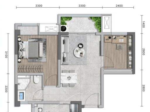 2 栋精装住宅 + 1 栋写字楼 + 社区商业街