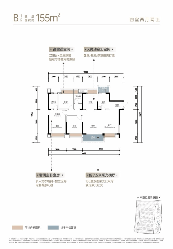 约155㎡品质四房:约7.5米大横厅