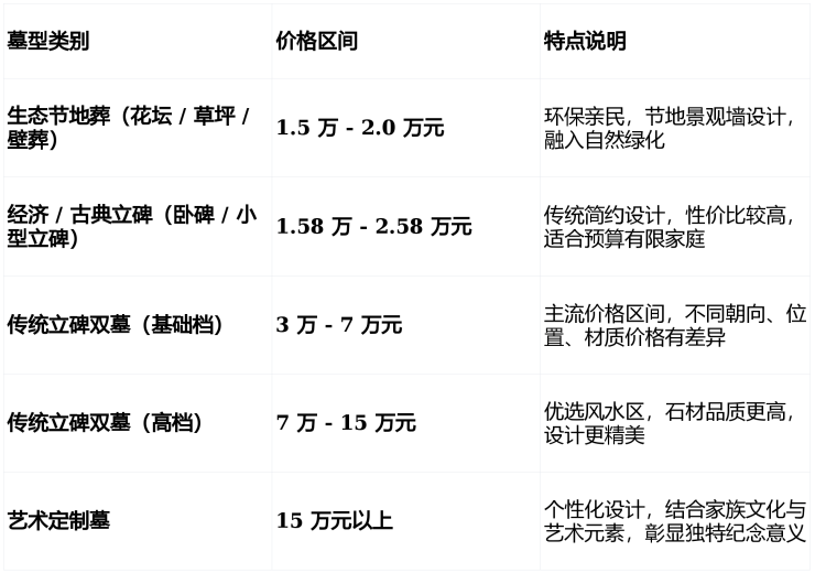 性价比高:墓型价格区间广,适合不同预算家庭