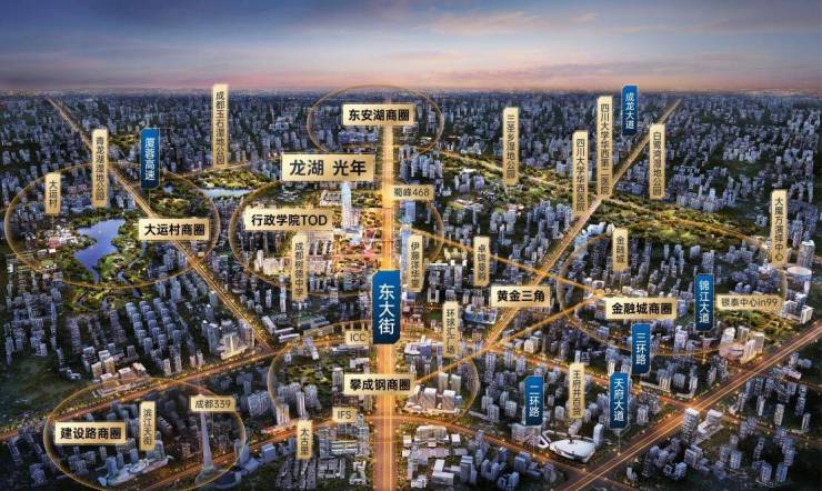 行政学院TOD作为东大街上的地理中枢,西临攀成钢,南接金融城。