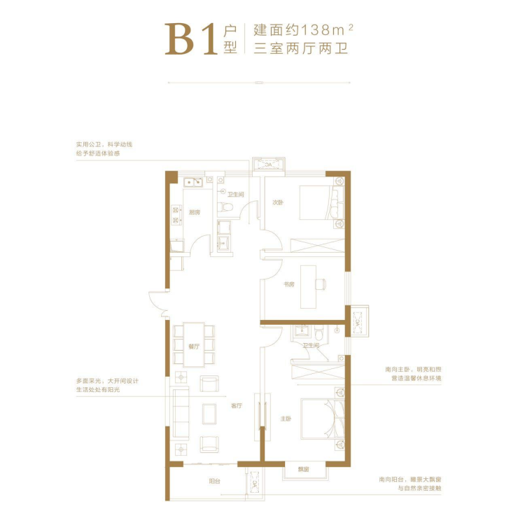 128㎡ 三室两厅两卫