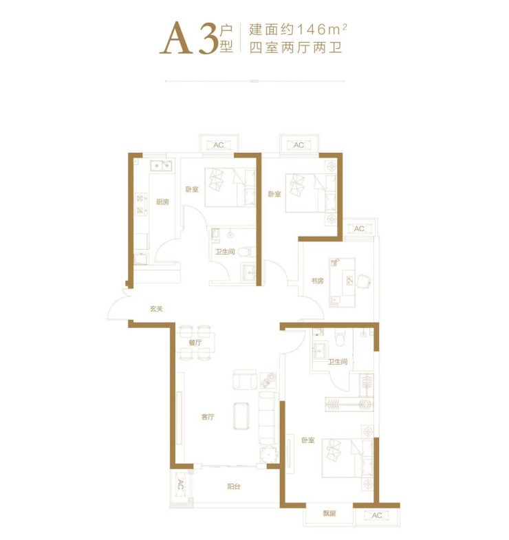 146㎡四室两厅两卫
