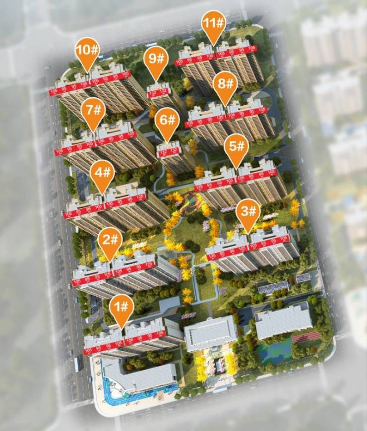 在售户型: 95㎡(三房两卫)、105㎡(三房两卫)、132㎡(四房两卫)