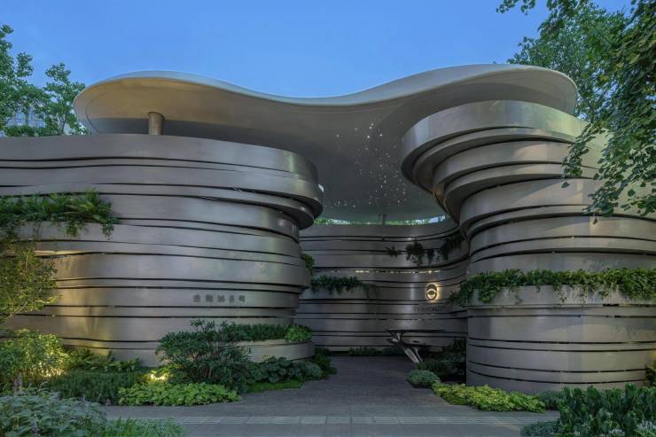 以“云端之上”为设计理念,采用蓝灰色三层玻璃幕墙,搭配浅香槟金铝板,营造简约轻盈的立面语言,补齐城市天际线。