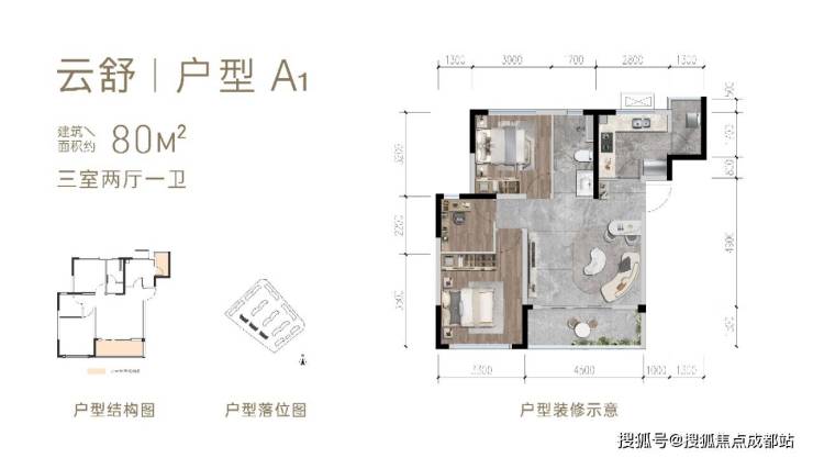 建面约80㎡三室两厅一卫