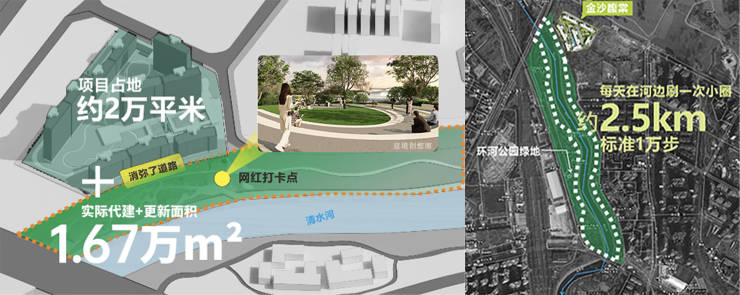 项目占地约2万㎡,以近 1:1 比例代建约1.67万㎡临河公园。