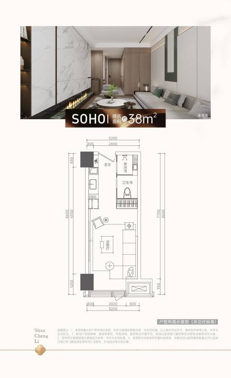 建面约38㎡(SOHO/LOFT,主力户型)。