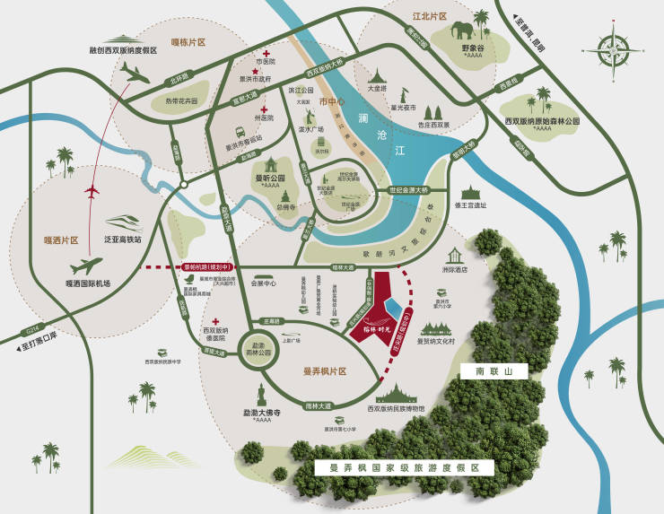 榕林时光项目位于景洪市曼弄枫榕林大道(洲际酒店旁),地处于勐泐雨林公园和西双版纳原始森林公园中间位置,生态宜居;周边旅游、医疗、教育、商业等配套完善,发展潜力大。
