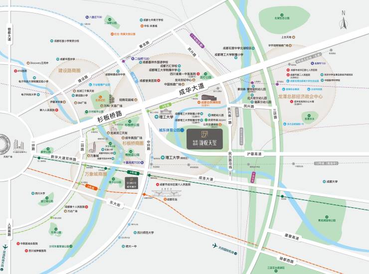 立体交通网:坐享"四横四纵"路网体系(蜀龙路/成华大道等),快速接驳二环、中环等城市主干道。轨道交通优势显著,7/8号线双地铁交汇(成都理工大学站),畅达全城。