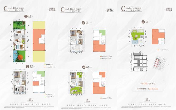 在售户型:143㎡-160㎡联排、55-131㎡洋房